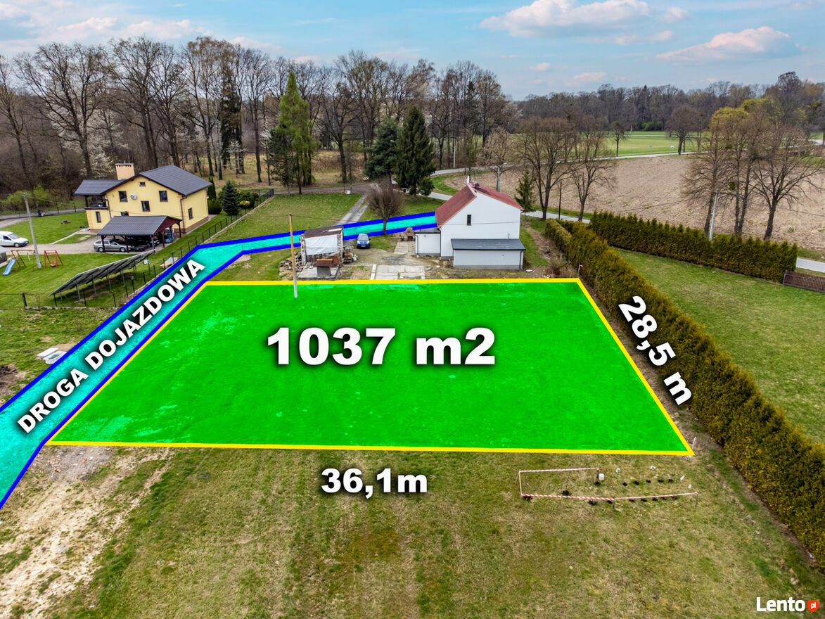 - powierzchnia działki 1037 m²,